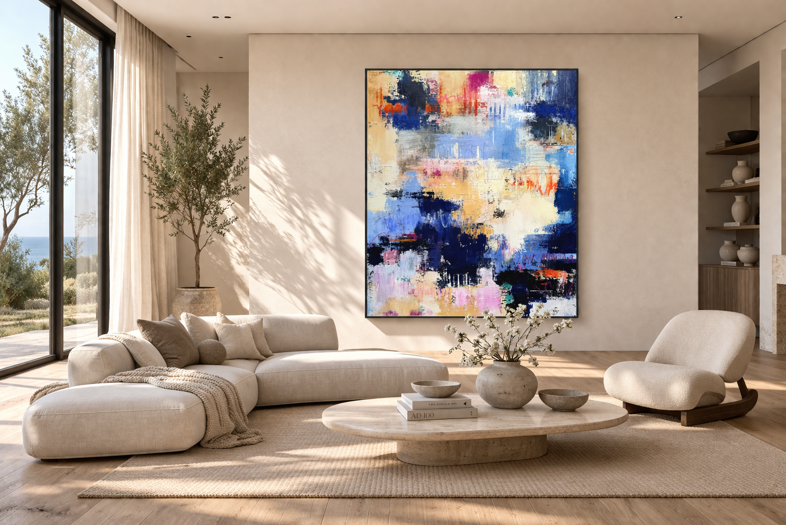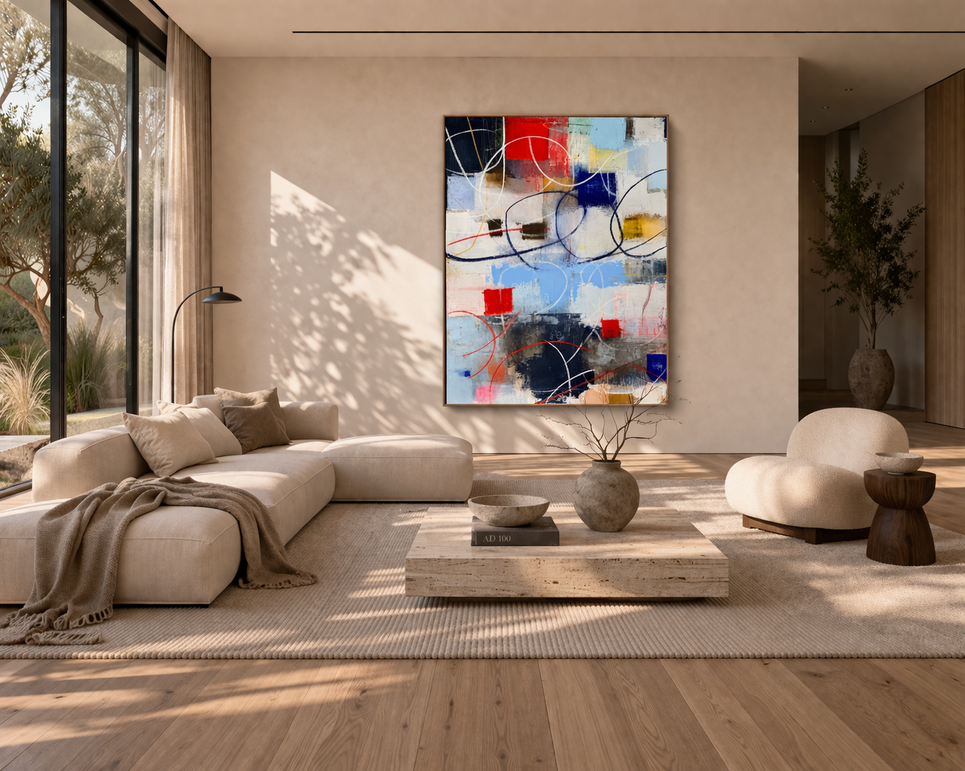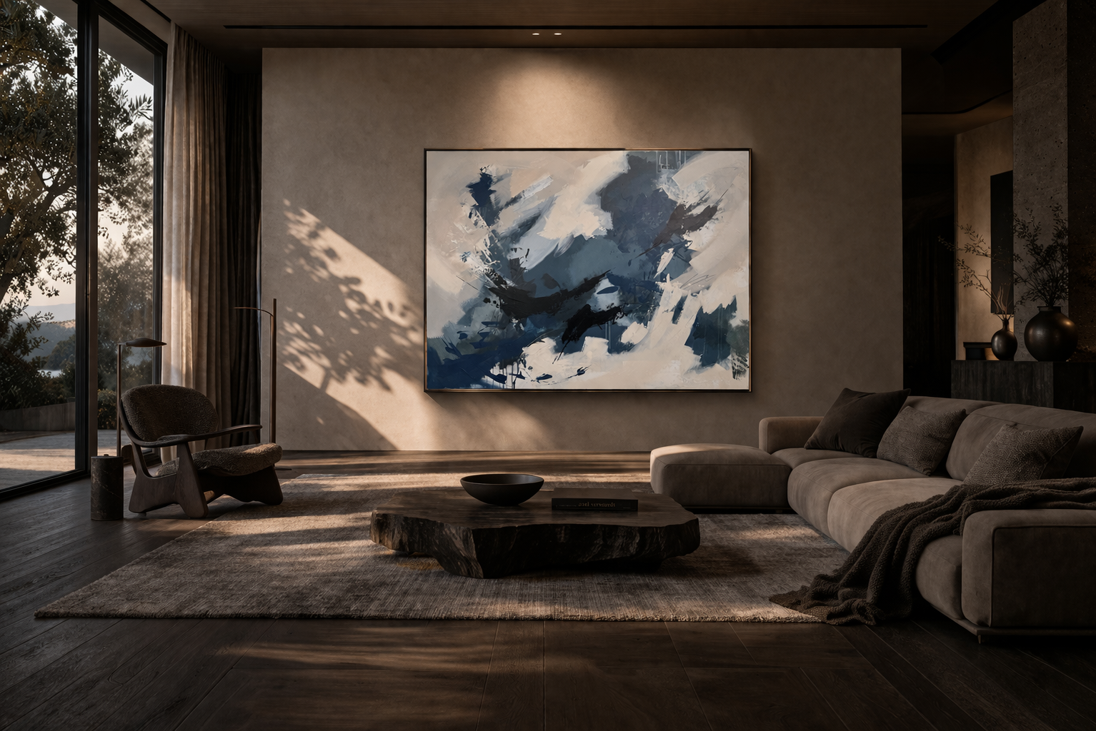 I create original abstract paintings that balance energy, structure, and atmosphere. Each piece is meant to feel collected, not decorative, with a strong sense of purpose in the room.