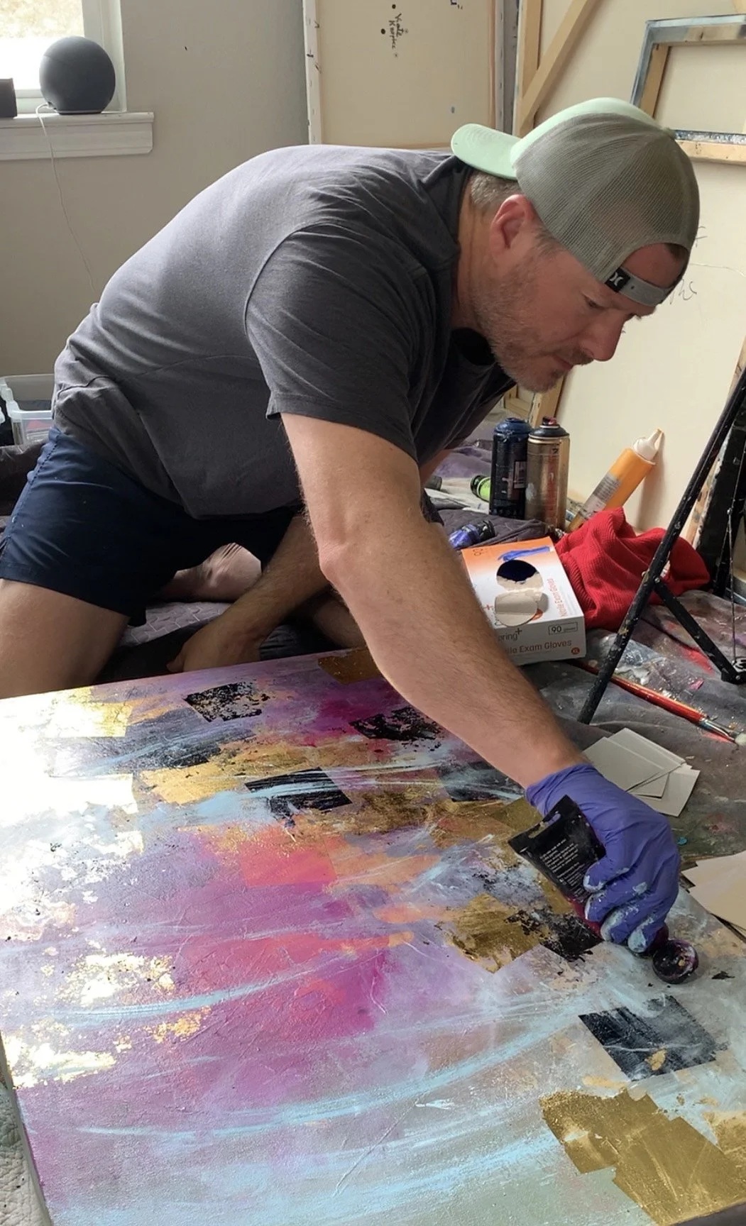 Jake Knopke is a Kansas City–based abstract artist whose work lives in the space where renewal arises from destruction; pain gives way to tranquility. His paintings are visceral, layered expressions of transformation, built from intuition, emotion, and a meditative process of creation.